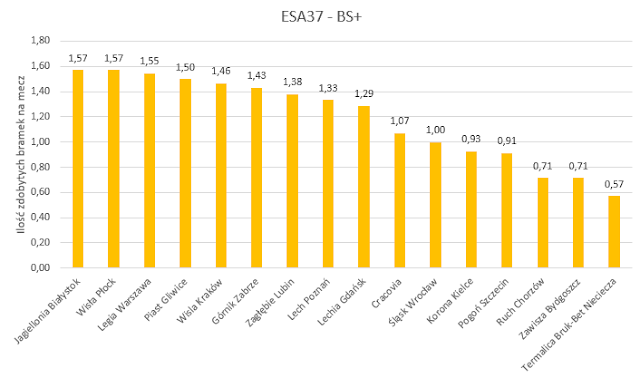 Ilość strzelonych bramek na mecz: