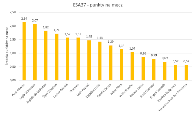 Ilość zdobytych punktów na mecz: