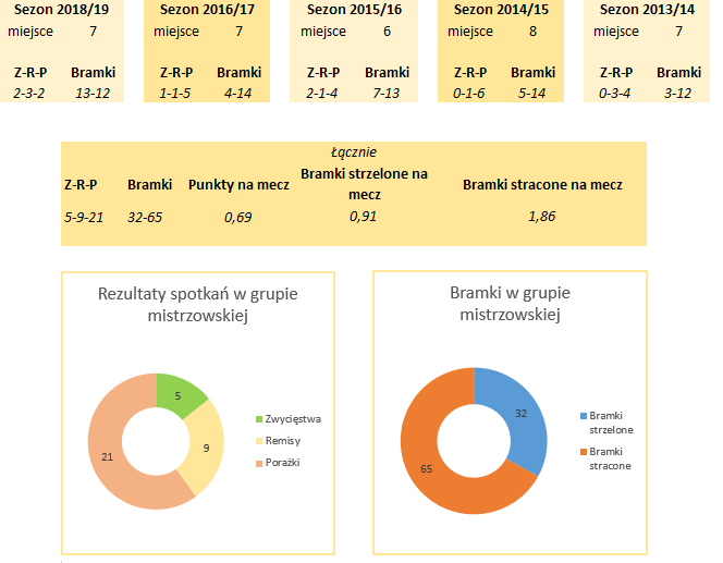 Jak słabo dotychczas radzili sobie Portowcy pokazuje średnia liczba zdobywanych punktów w każdym spotkaniu. Pomimo aktualnego wyniku (1,29), całościowy rezultat (z wszystkich 5 sezonów) wynosi zaledwie 0,69 pkt/mecz i wzrósł z jeszcze bardziej wstydliwego 0,54. Dodatni bilans bramkowy z obecnego sezonu również należy zaliczyć "na plus", ale do podreperowania całościowej różnicy (32-65) jeszcze daleka droga.