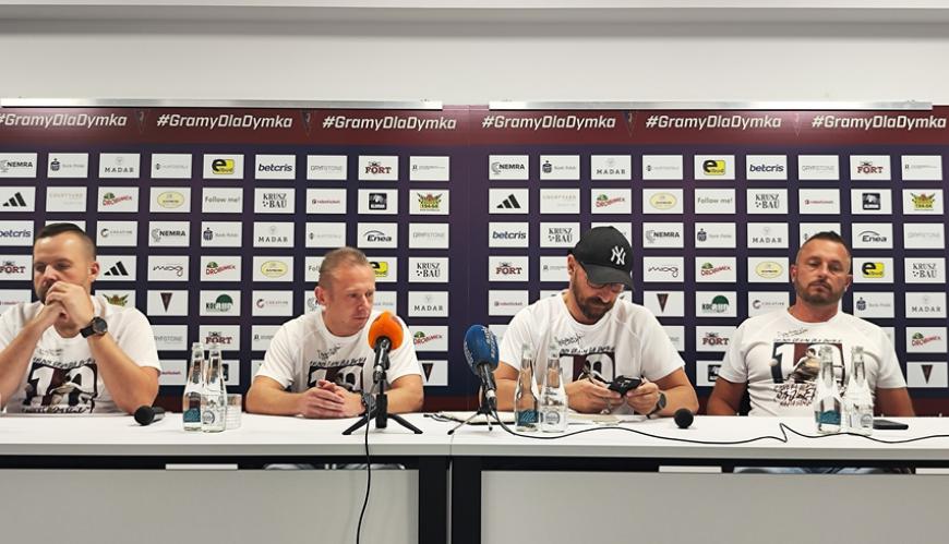 W środę w siedzibie klubu odbyła się konferencja prasowa przed imprezą charytatywną "Gramy dla Dymka", która odbędzie się w najbliższą sobotę. Udział w niej wzięli organizatorzy wydarzenia: Dawid Trzeźwiński, Piotr Kołacki, Maciej Stolarczyk i Łukasz Biwan z ramienia Pogoni Szczecin SA.