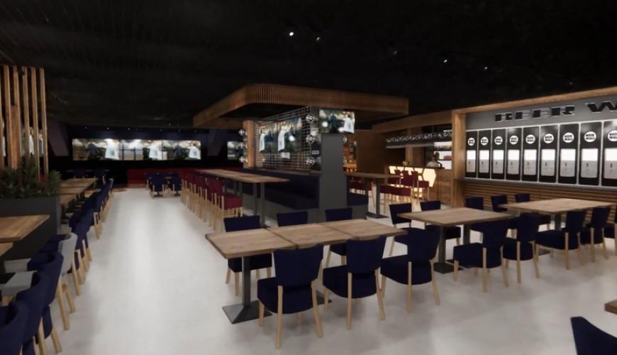 Pogoń Szczecin SA pracuje nad restauracją, która miałaby znaleźć się we wnętrzach trybuny D, tuż obok istniejącego Fanshopu. Opowiadał o tym Alex Haditaghi w wywiadzie, który opublikowaliśmy dziś rano, a teraz klub podzielił się dwiema wizualizacjami.