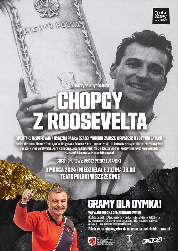 Spektakl „Chopcy z Roosevelta” odbędzie się w niedzielę 3 marca o godzinie 16.00 na deskach Sali Szekspirowskiej Teatru Polskiego w Szczecinie. Gościem honorowym wydarzenia będzie ikona Górnika Zabrze oraz Reprezentacji Polski w piłce nożnej, Włodzimierz Lubański.